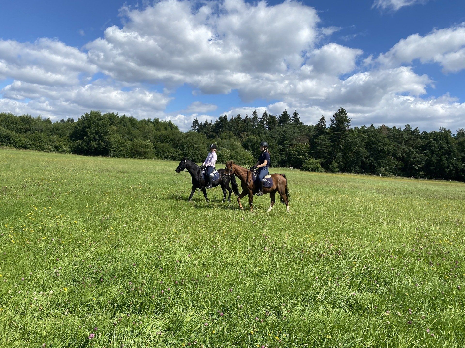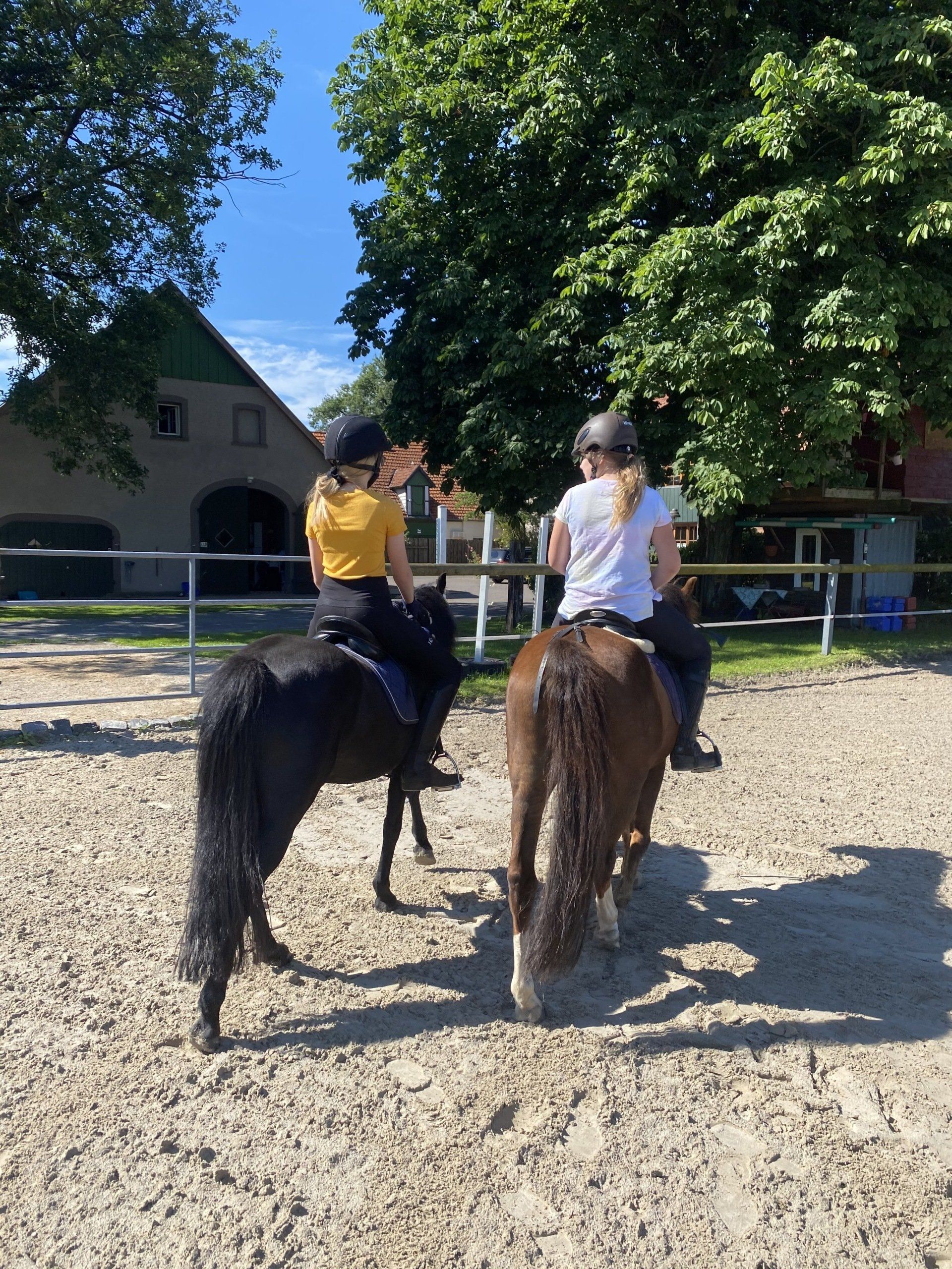 In unseren Reiterferien dreht sich nahezu alles nur ums Pony bzw. Pferd. Die Pferdebegeisterten werden täglich auf dem Dressur-, Springplatz oder bei schlechtem Wetter in der Halle reiten. Außerdem stehen Ausritte auf der Tagesordnung. Daneben lernen die Kinder in der Reiterferien-Woche Bodenarbeit und Longieren sowie Materialkunde, Pflege, das Versorgen von Pferden u.v.m. kennen.